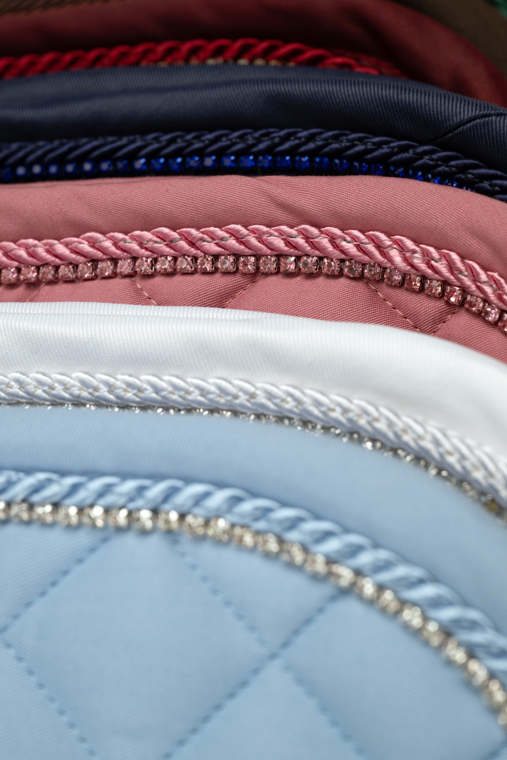 Nowość w ofercie! Idealnie dopasowany do anatomicznych kształtów konia. Wykonany z drobno pikowanego drelichu, odpornego na przetarcia i utratę koloru. Posiada bezkonkurencyjne właściwości termoregulacyjne. Wewnętrzna część z materiału Evolon® powoduje, że czaprak chłonie pot, jest oddychający i osuszający. Nie zatrzymuje sierści - pozostaje na wierzchu, co ułatwia utrzymanie czapraka w czystości. Wykończony lamówką, ozdobiony sznurem w kolorze produktu i połyskującymi kryształkami.