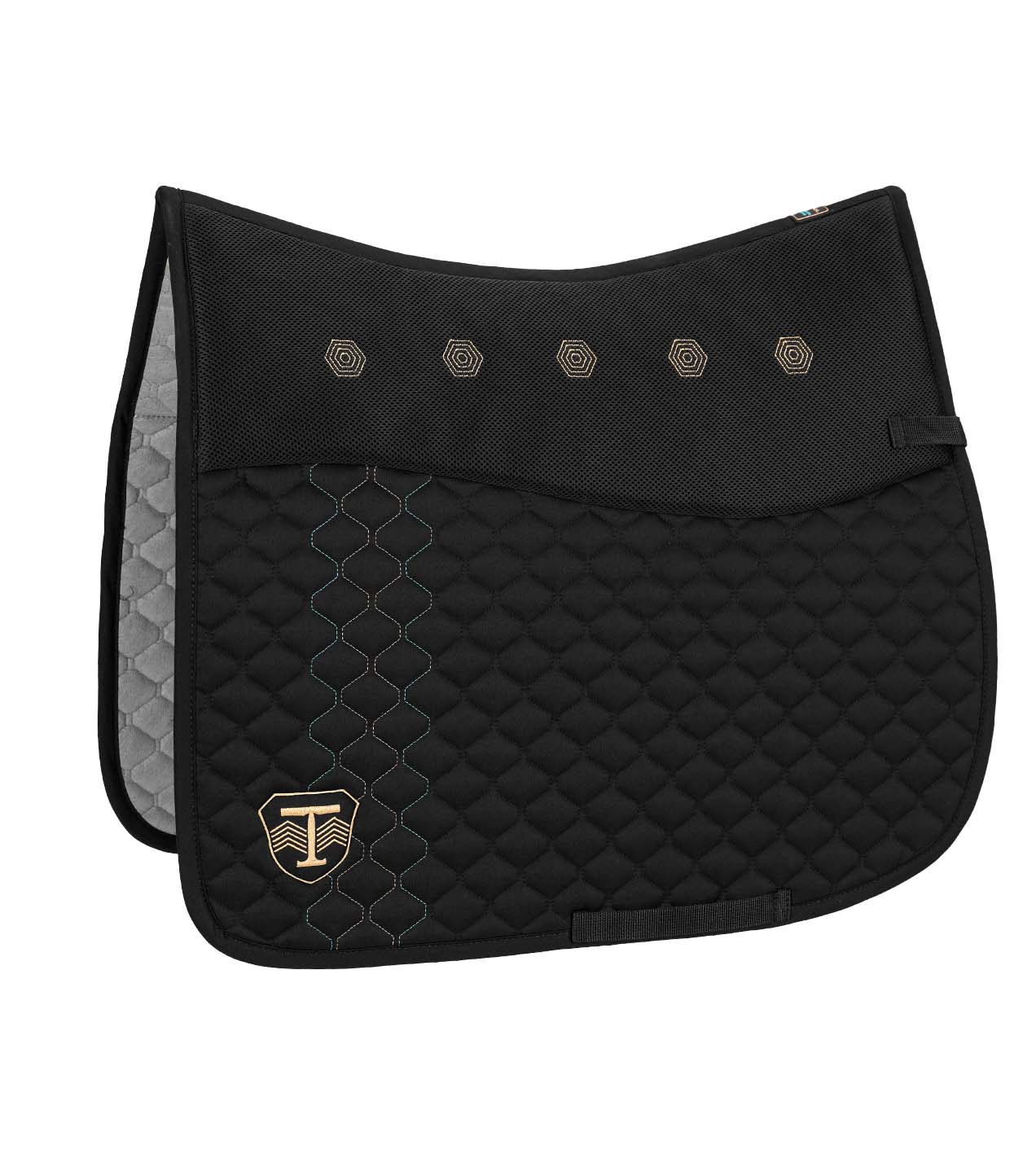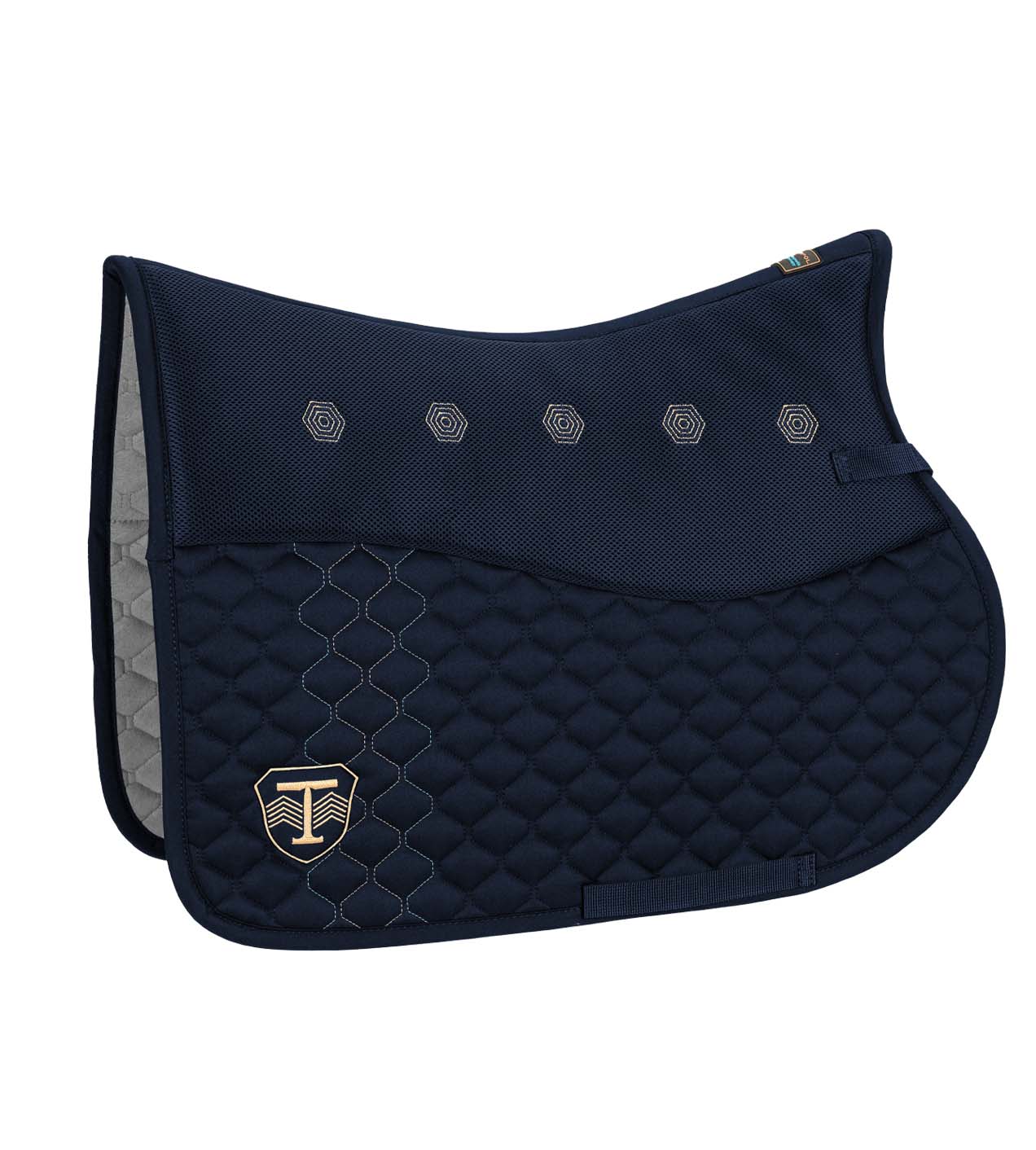 Wykonany z pikowanego drelichu z charakterystycznymi kontrastowymi przeszyciami. Posiada podszycie z włókniny Evolon® o bezkonkurencyjnych właściwościach chłonnych, oddychających i osuszających. W górnej części wzmocniony dodatkową warstwą włókniny zabezpieczoną siatką 3D, która zapewnia doskonałą cyrkulację powietrza i ochronę przed uciskiem i obiciami. Anatomiczny krój sprawia, że czaprak idealnie dopasowuje się do grzbietu.