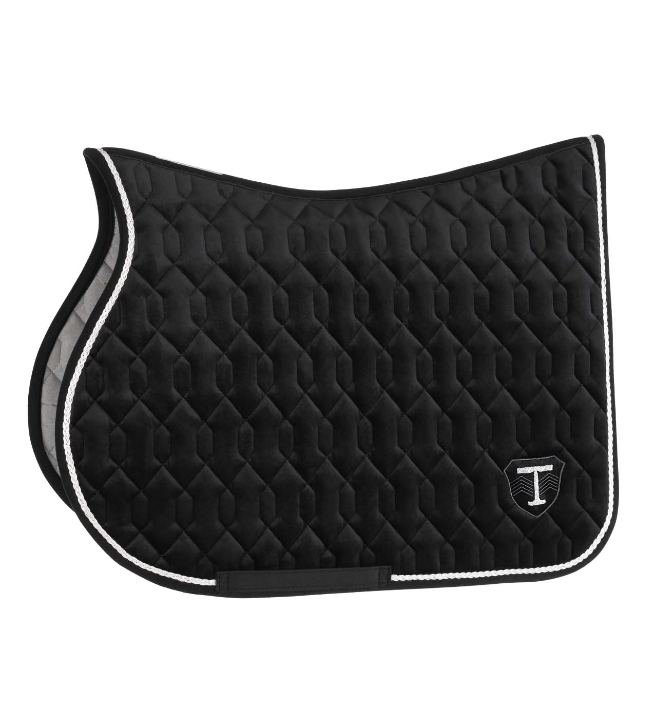 Czaprak Skokowy Royal Wykonany z wysokiej jakości tkaniny pluszowej, niezwykle przyjemnej w dotyku. Posiada podszycie z włókniny Evolon® o bezkonkurencyjnych właściwościach termoregulacyjnych, które powoduje, że czaprak chłonie pot, jest oddychający i osuszający. Nie zatrzymuje s…