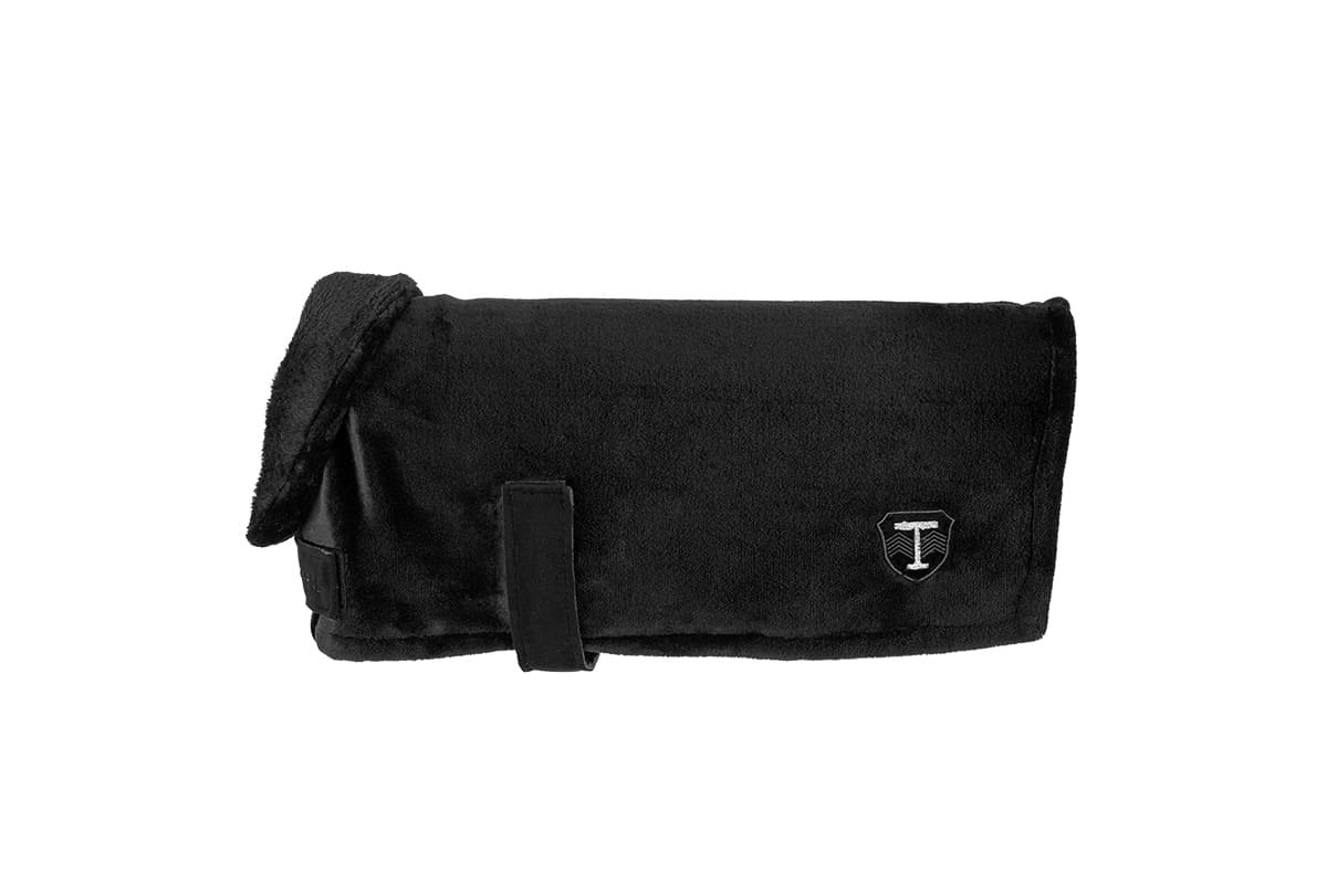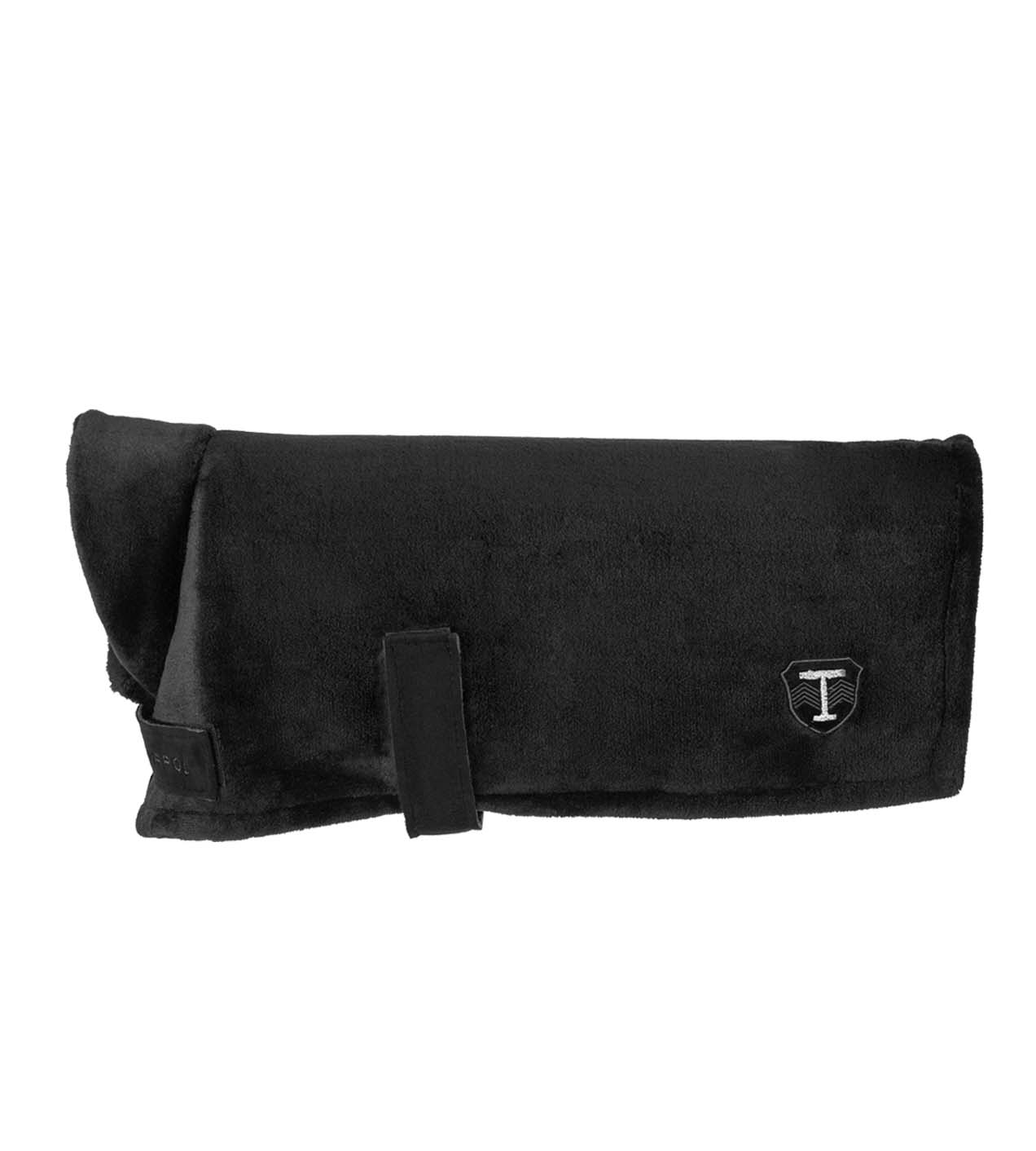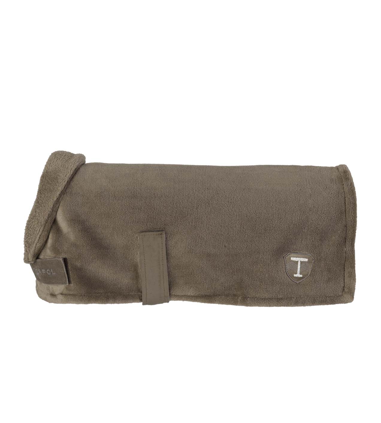 Komfortowa, wykonana z miękkiej dzianiny pluszowej. Ozdobiona metalicznymi haftami. Wspaniale układa się na grzbiecie, a odwijany kołnierz nadaje jej wyjątkowy charakter i chroni szyję przed chłodem. Świetnie odprowadza pot. Zapewnia optymalną termoregulację i cyrkulację powietrza. Zapinana na rzep. Gumowe paski pod nogi utrzymują ją na właściwym miejscu.