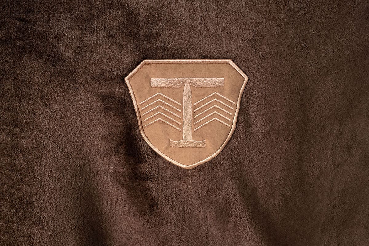 Derka ozdobiona jest welwetowymi naszywkami ze złotymi haftami, nawiązującymi do stylistyki kolekcji Royal 2.0. Perfekcyjna forma powoduje, że doskonale układa się na grzbiecie. Wywijany kołnierz chroni szyję przed chłodem. Zapinana na pojedyncze zapięcie z możliwością regulacji, z paskiem pod ogon.