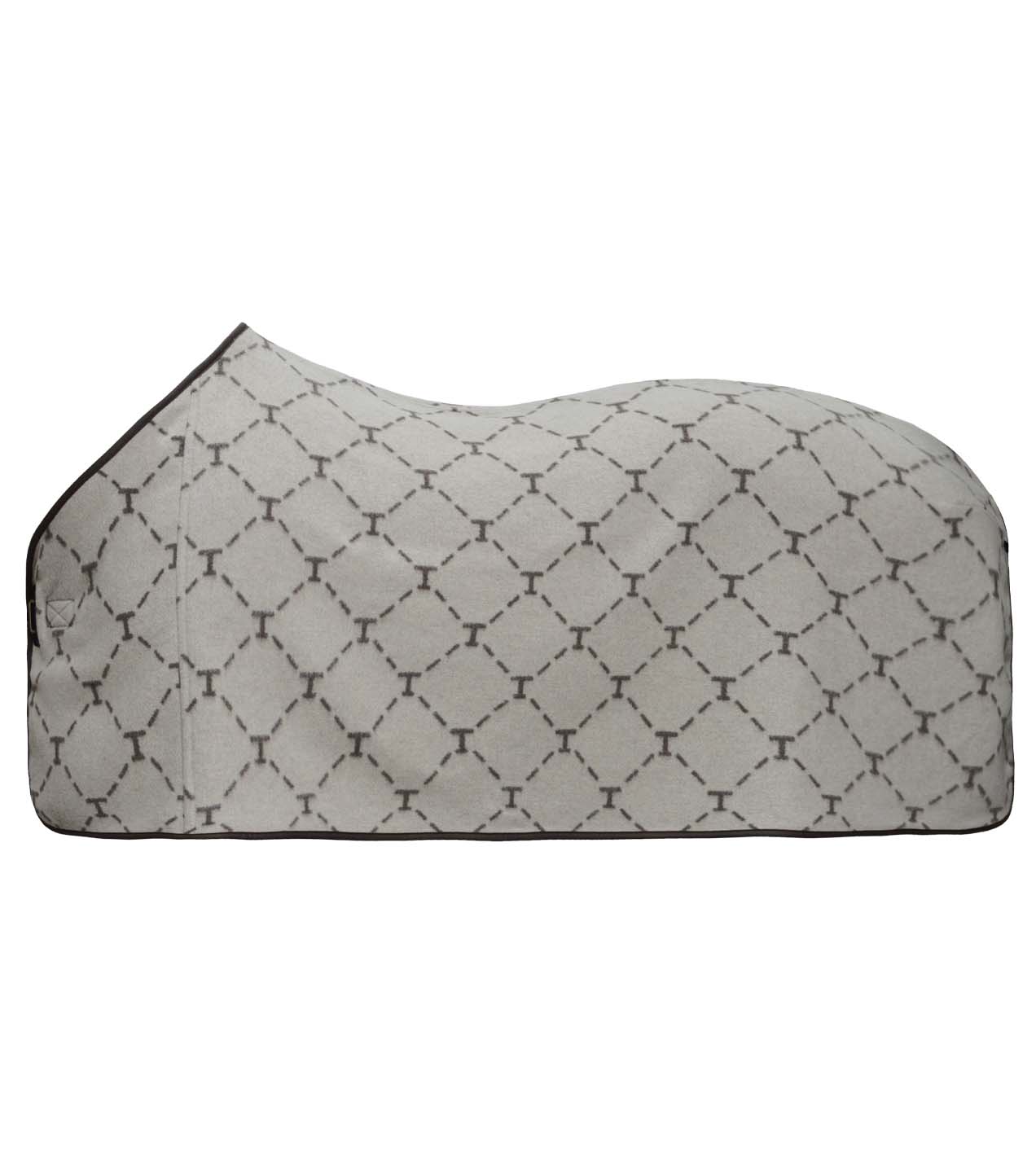 Stylowa derka w odcieniach beżu i brązu w dwóch wersjach kolorystycznych: ciemna z jasnym motywem i jasna z ciemnym. Przystosowana jest do dwustronnego wykorzystania. Obszyta lamówką z ekoskóry. Wykonana z dzianiny wełnianej o wysokich parametrach jakościowych. Dobrze dopasowana do grzbietu konia. Nie przesuwa się i nie ogranicza swobody ruchów. Posiada właściwości termoregulacyjne i osuszające, odpowiadające za doskonały przepływ powietrza. Pozwala skórze oddychać. Natychmiastowo odprowadza wilgoć wytwarzaną podczas wysiłku fizycznego.