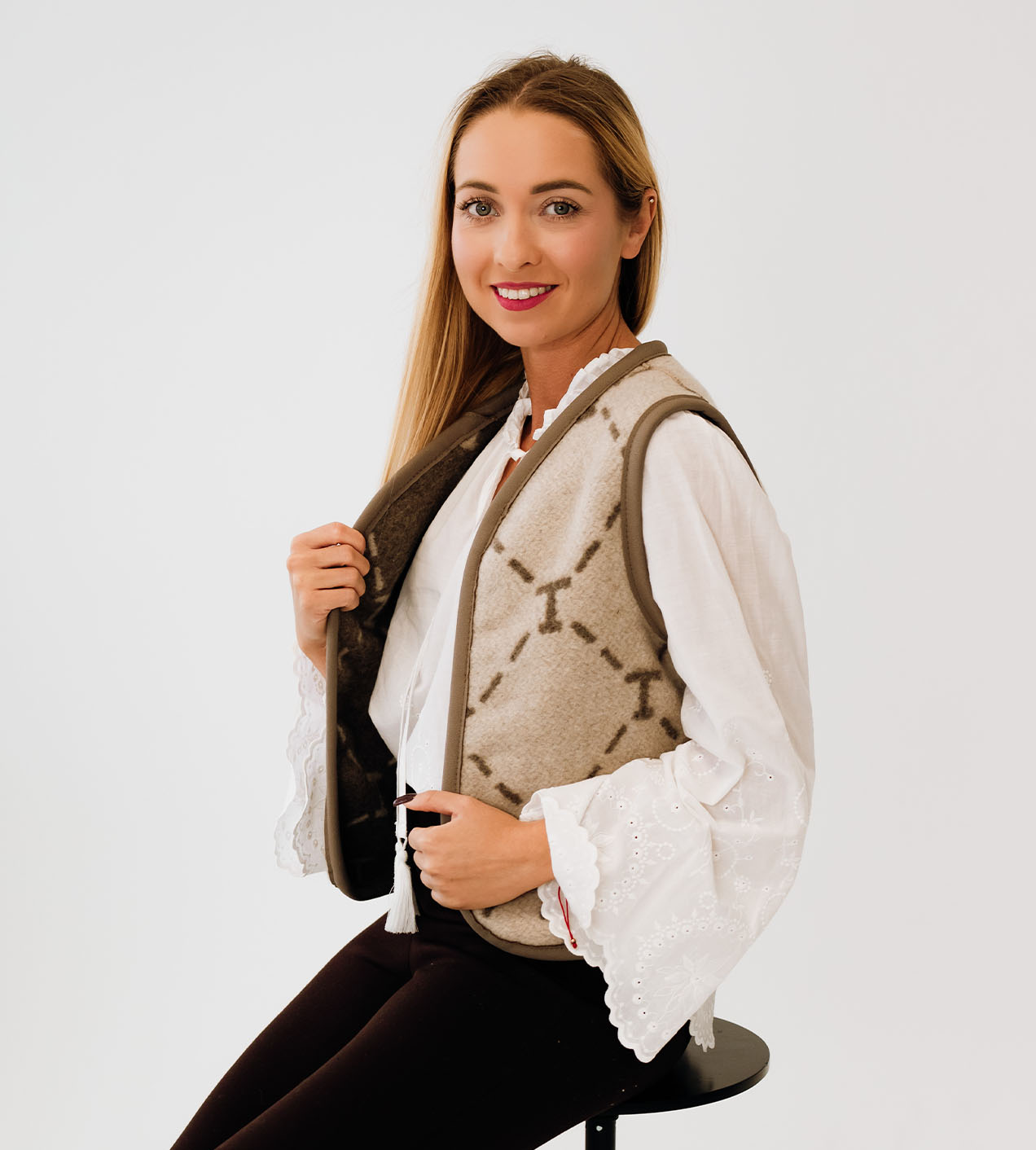 Kamizelka WoolVibes Dwustronna Twój uniwersalny must-have Klasyka w najlepszym wydaniu! Kamizelka WoolVibes wykonana z miękkiej, oddychającej wełny merynos łączy komfort z elegancją. Ponadczasowy, uniwersalny fason pasuje do każdej stylizacji – od codziennych zestawów, przez e…