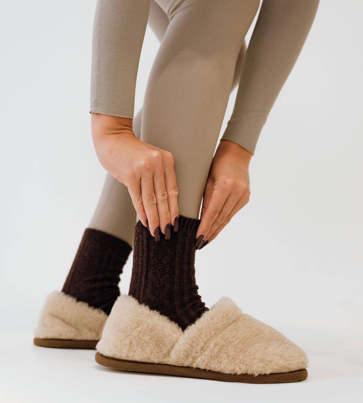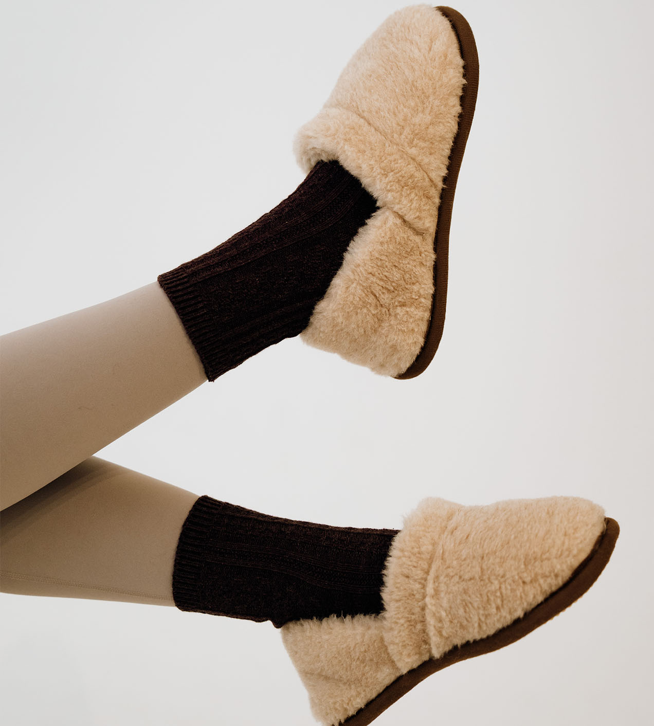 Skład: 95% wełna merino, 5% wełna camel; antypoślizgowa podeszwa