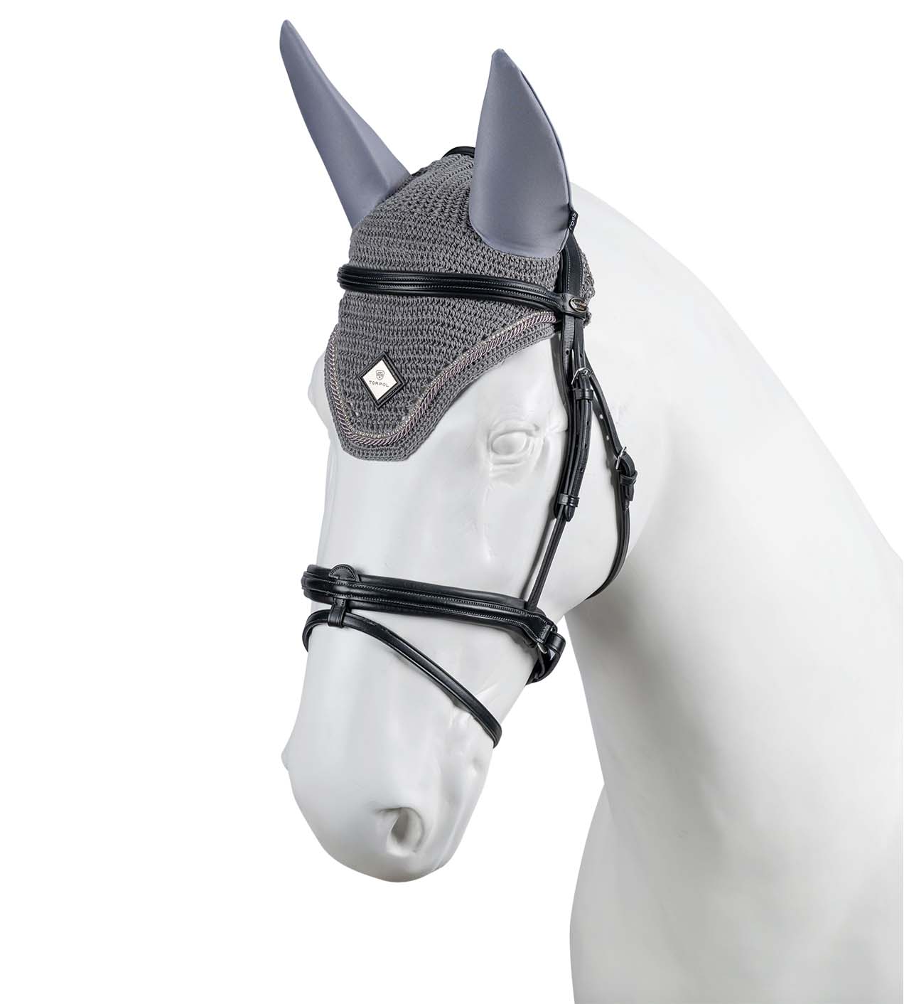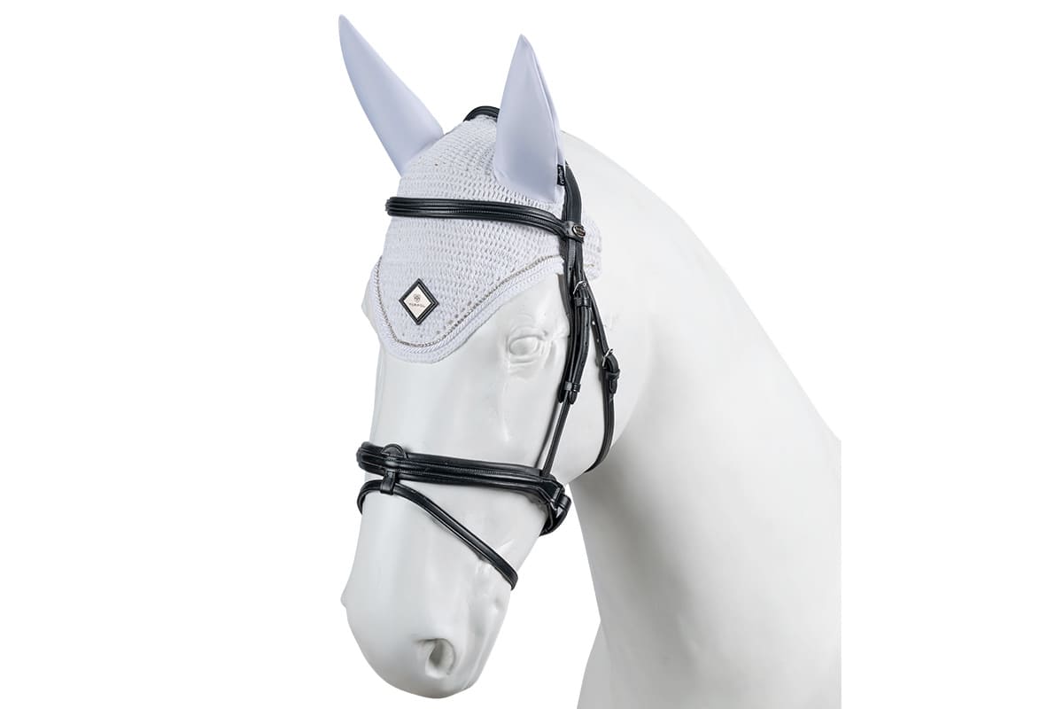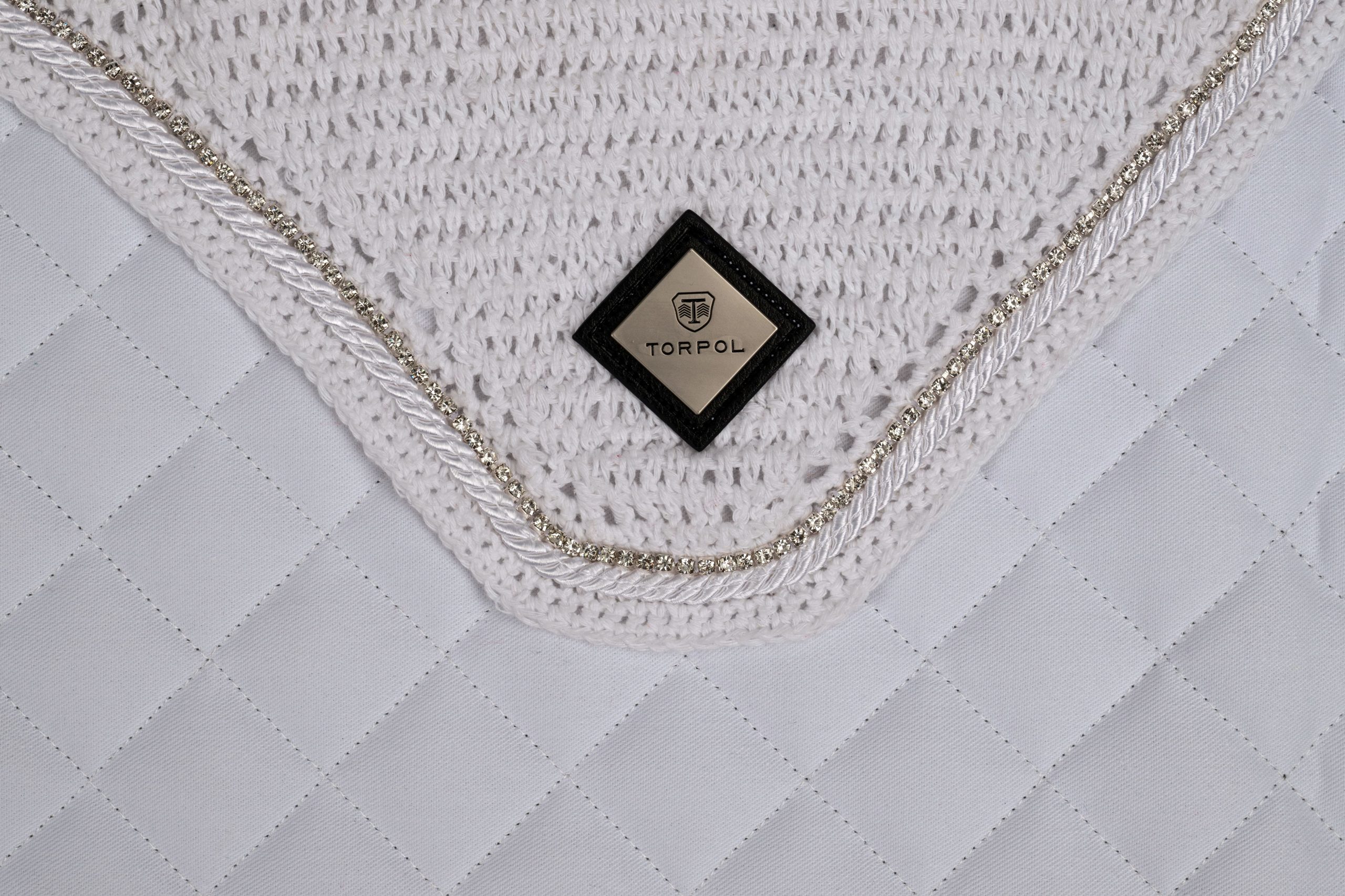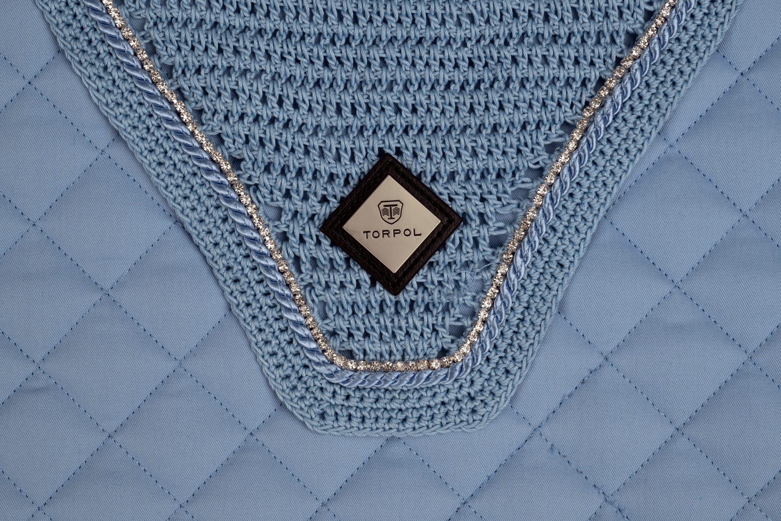 Wykonane ręcznie z delikatnej włóczki bawełnianej, wykończone dekoracyjnym ściegiem. Chronią przed owadami i redukują dźwięki podczas jazdy. Ozdobione połyskującymi kryształkami oraz sznurem w kolorze produktu.