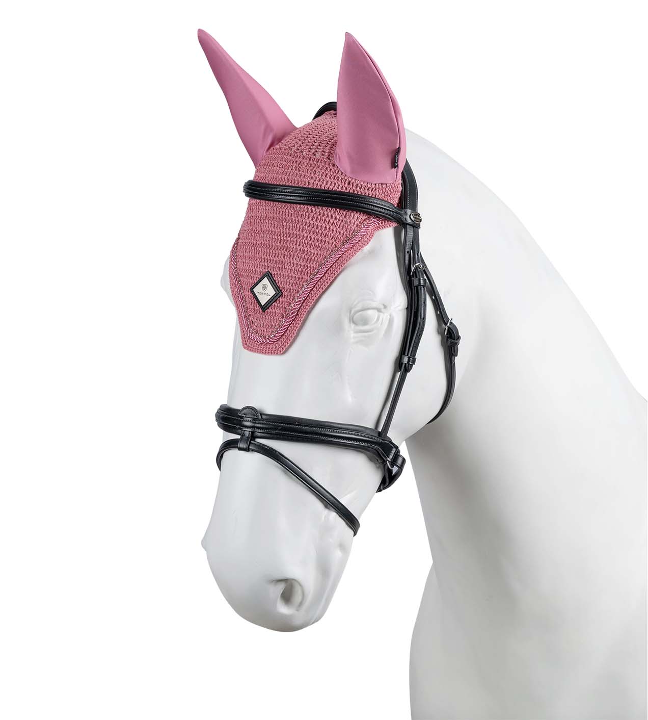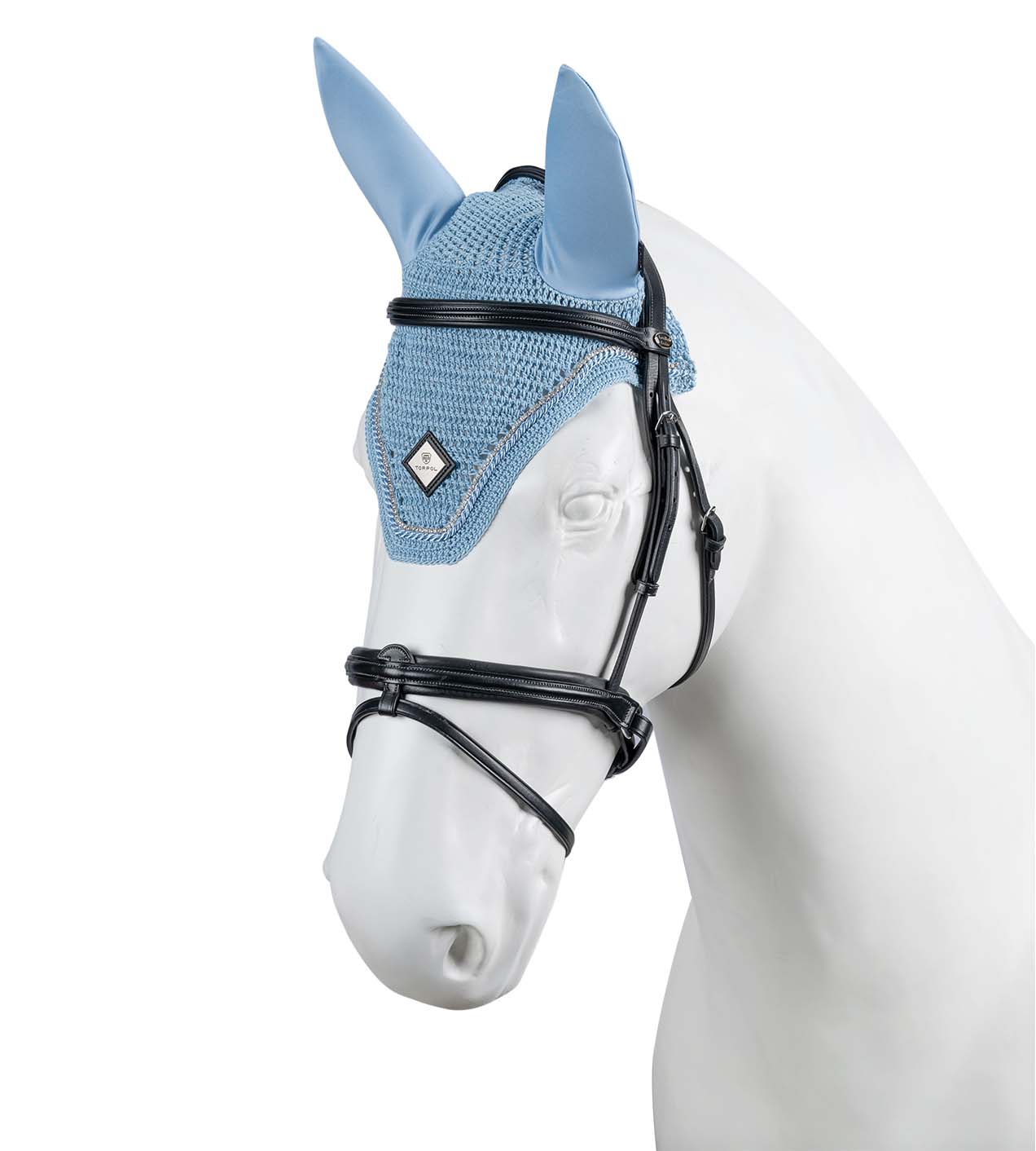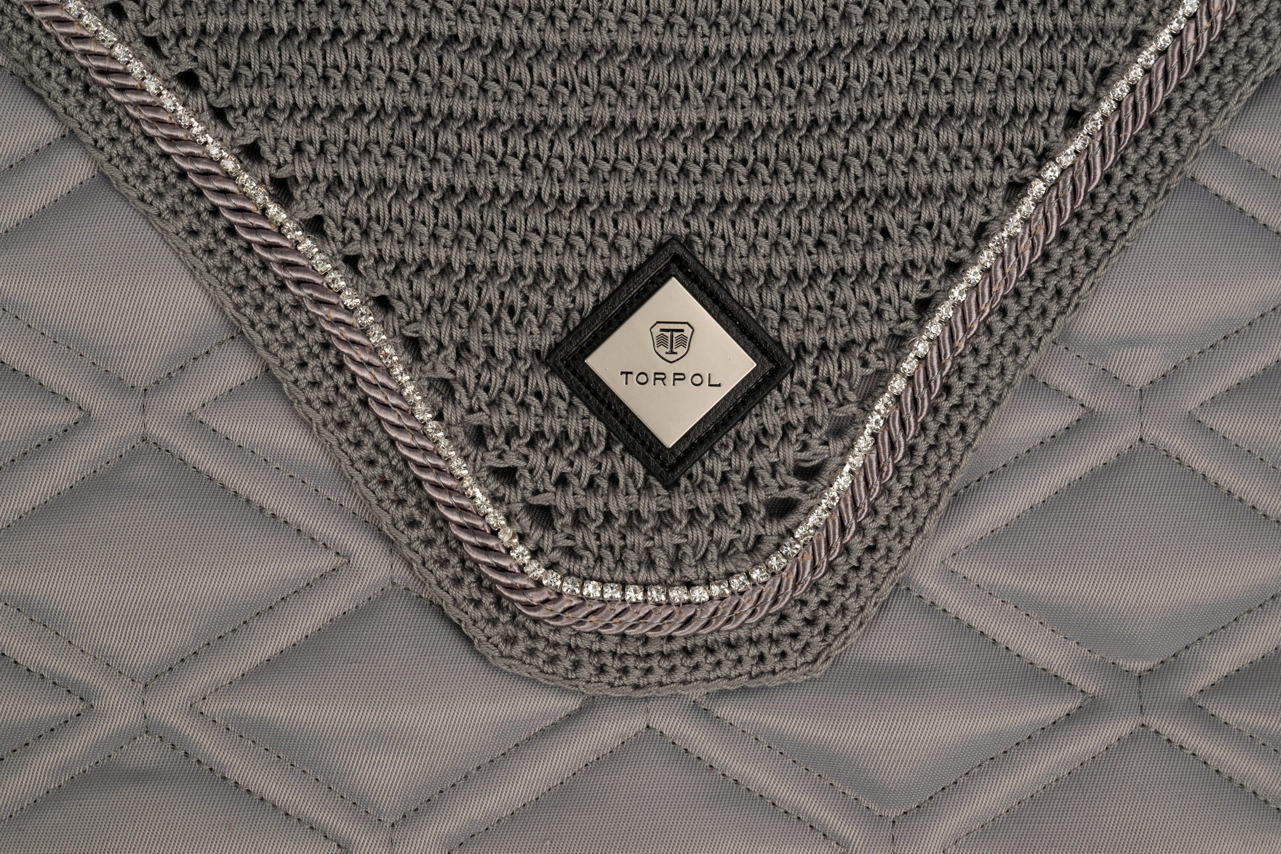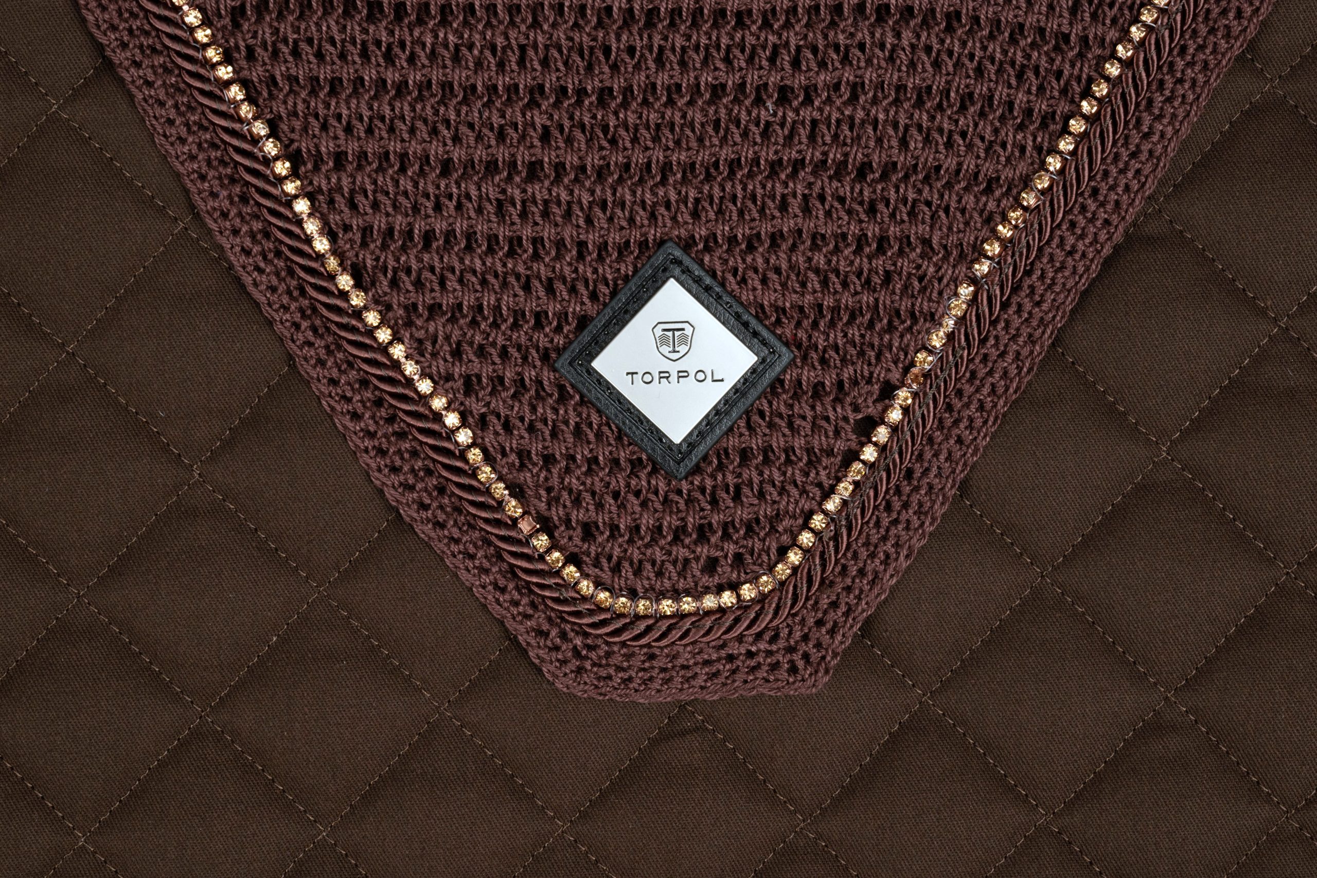 Wykonane ręcznie z delikatnej włóczki bawełnianej, wykończone dekoracyjnym ściegiem. Chronią przed owadami i redukują dźwięki podczas jazdy. Ozdobione połyskującymi kryształkami oraz sznurem w kolorze produktu.