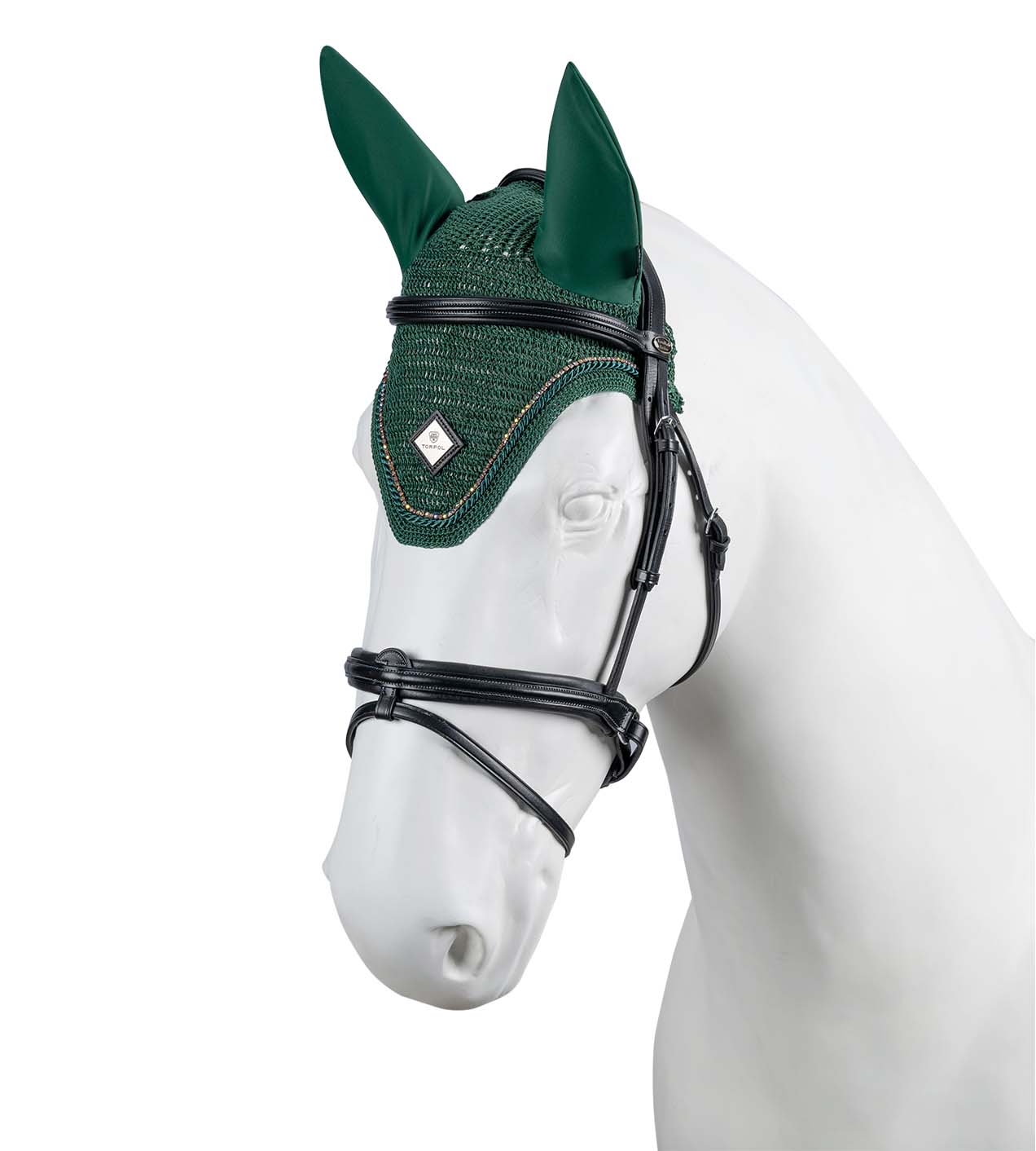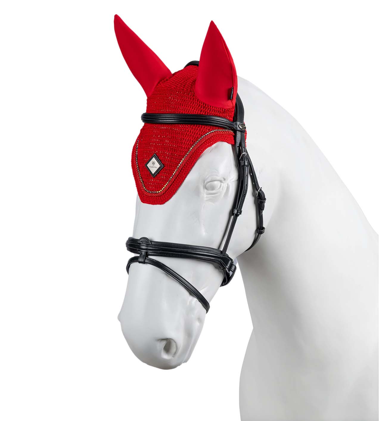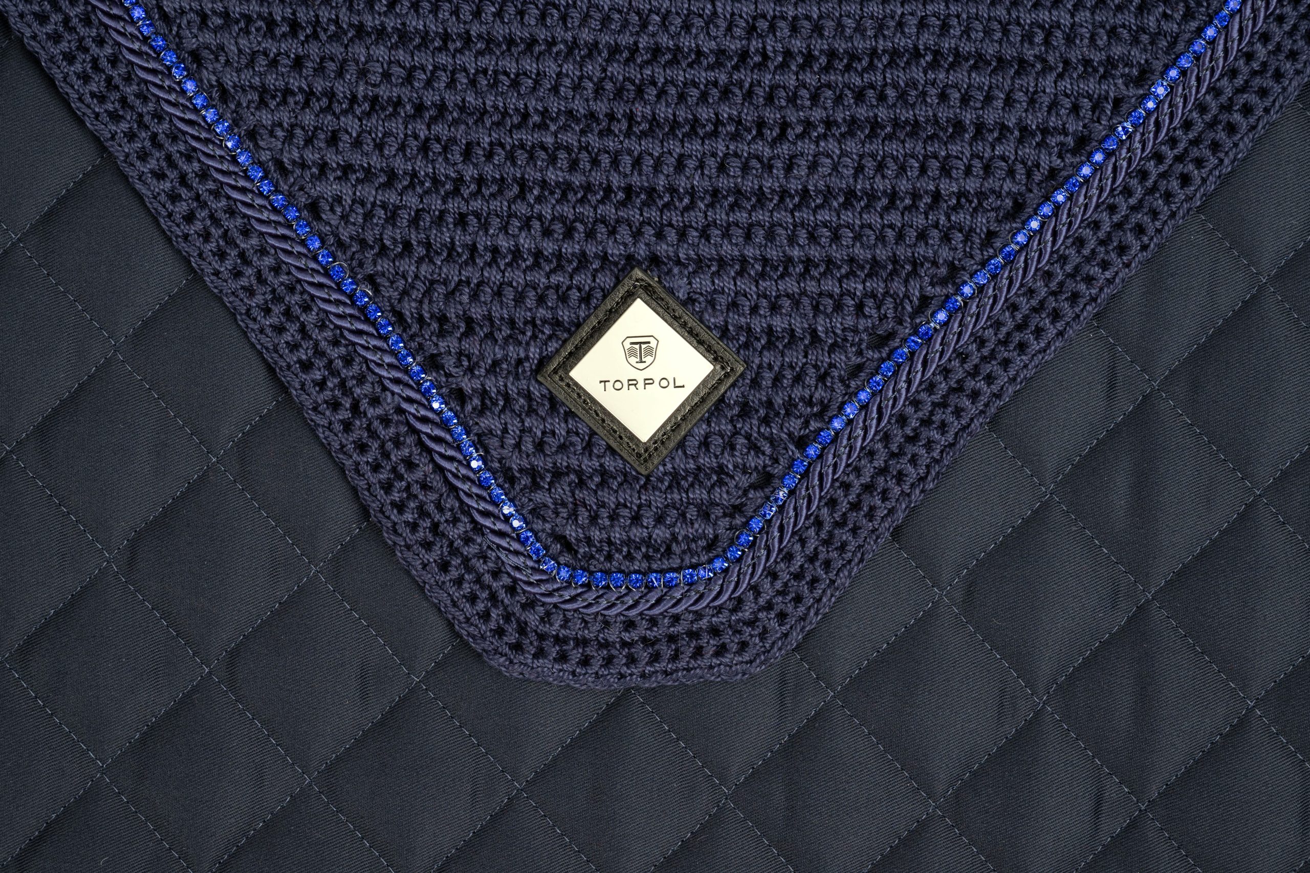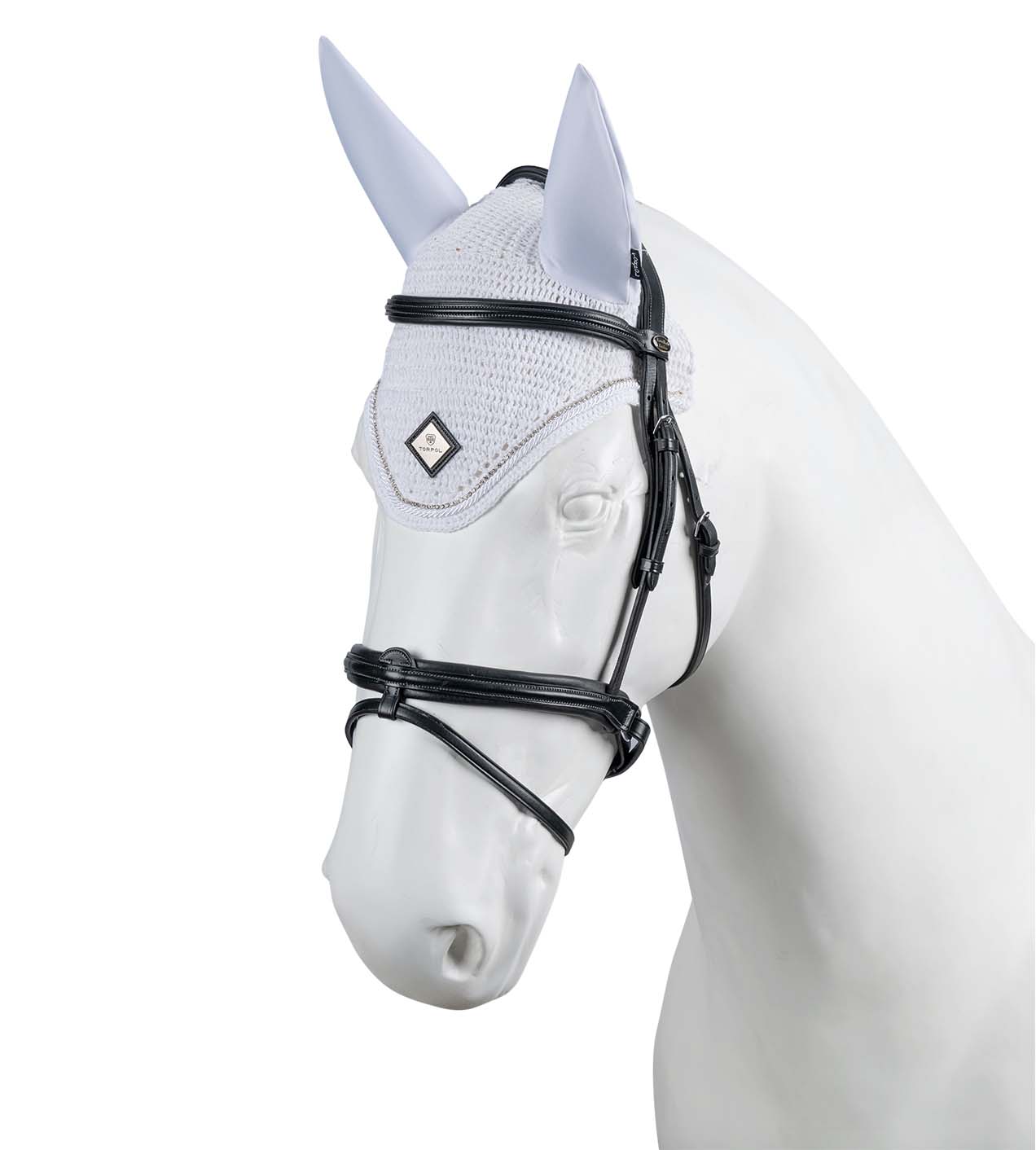 Wykonane ręcznie z delikatnej włóczki bawełnianej, wykończone dekoracyjnym ściegiem. Chronią przed owadami i redukują dźwięki podczas jazdy. Ozdobione połyskującymi kryształkami oraz sznurem w kolorze produktu.