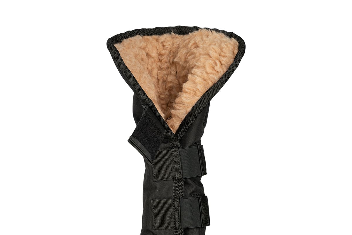 Wykonane z ortalionu, wzmocnione warstwą włókniny, podszyte dzianiną wełnianą Nelson™ z solidnymi rzepami, które utrzymują ochraniacze we właściwym miejscu. Nowością są zapięcia wzbogacone o elementy z mocnej gumy, dzięki czemu można je jeszcze lepiej dopasować.