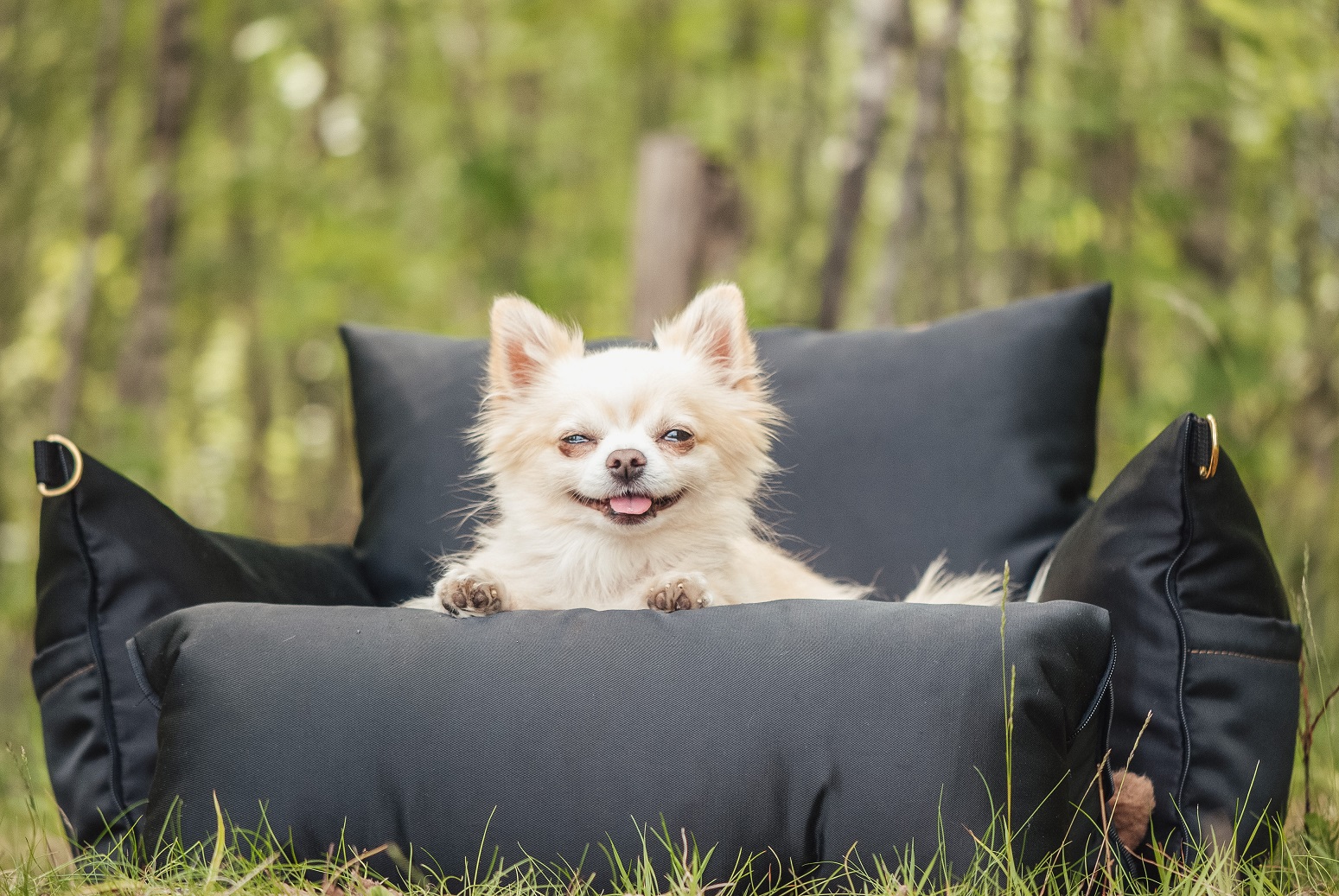 Tkanina B-Nev na drugiej stronie pokrowca jest szczególnie praktyczna podczas niekorzystnych warunków pogodowych. Jej walory użytkowe docenić można, kiedy zabłocony pies po spacerze wraca do torby. Tę gładką i śliską powierzchnię poduszki wyjątkowo łatwo jest przywrócić do porządku.