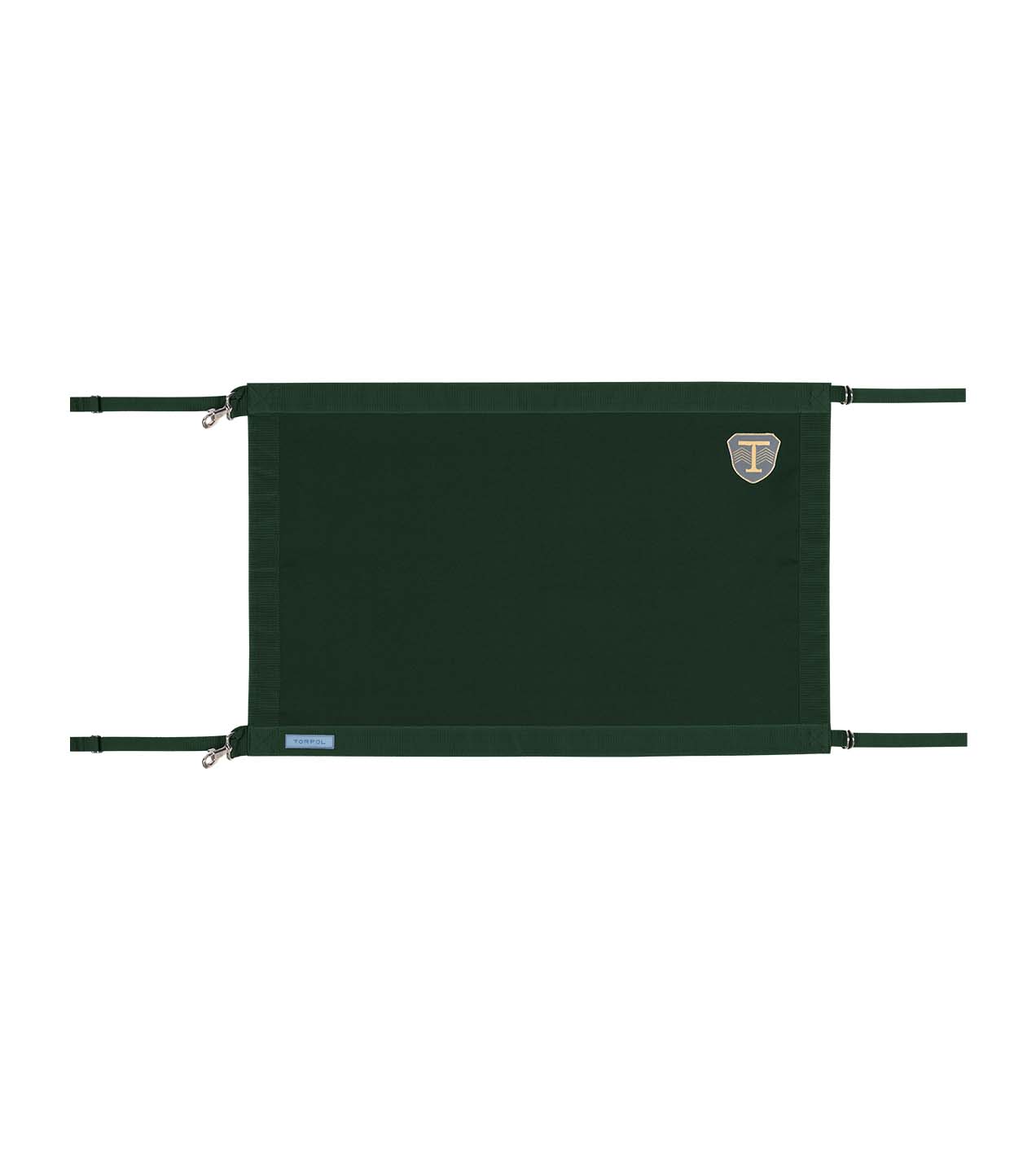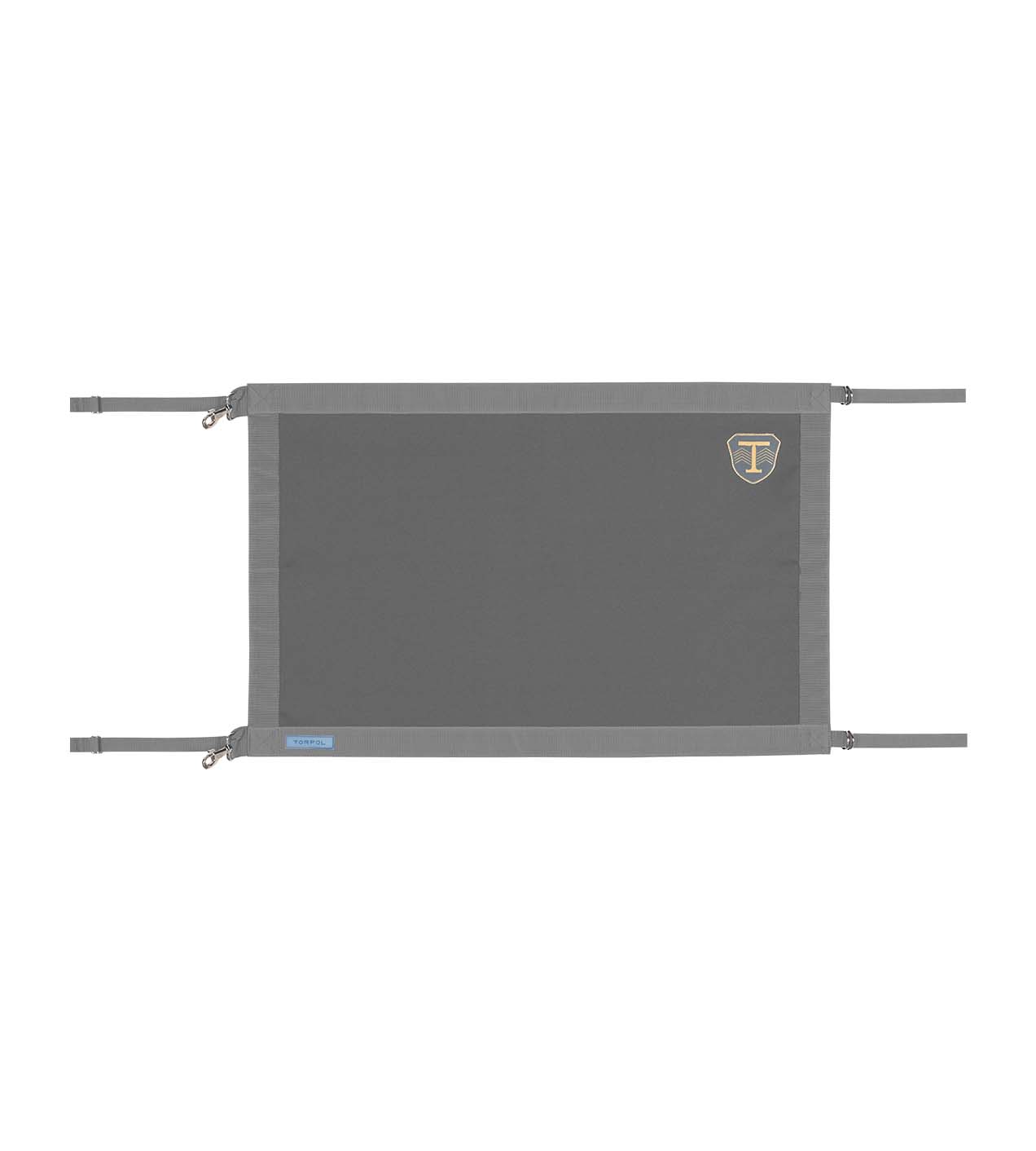 Wykonany z odpornego na zabrudzenia ortalionu. Wykończony wytrzymałą taśmą. Posiada paski z regulatorami (po dwa z każdej strony), ułatwiające mocowanie na drzwiach boksu.