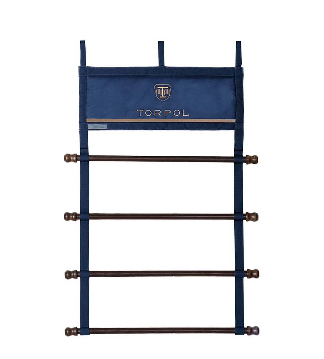 Wieszak Stajenny Torpol Design Doskonale porządkuje przestrzeń w stajni. Górna część wykonana z ortalionu wykończona kontrastową taśmą, wzmocniona pianką poliuretanową. Wzmocniony taśmą nośną, stabilizującą drążki. Dostępny z 3 lub 4 drążkami. Materiał: ortalion (100% poliester)Wykońc…
